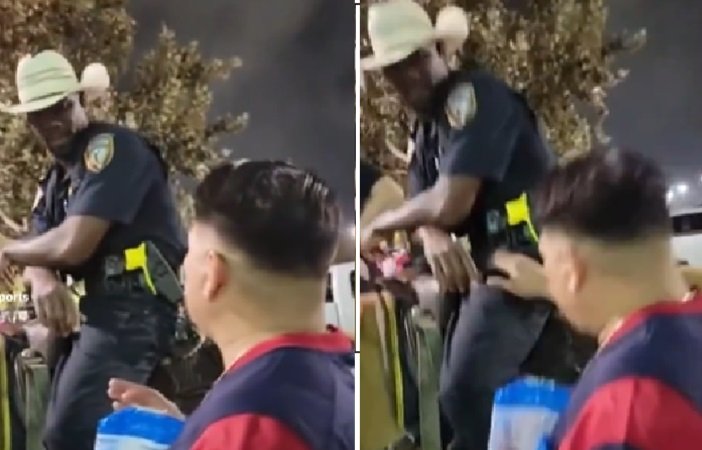 Frank Administrator Staff member Joined Jun 16, 2023 Messages 2,597 Reaction score 2 Here's a sports fan walking up to a horse cop and asks if "it's ok to pet?" The guy then pets the cop's leg and not the horse. The cop had a good sense of humor after the prank. Your browser is not able to display this video. Attachments horse cop prank.jpg 49.7 KB · Views: 187