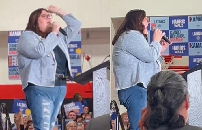 A woman named Olivia posted a video of herself speaking to a crowd. She wrote the following to go with the video: "This November I’ll be voting in my first Presidential and Senate election— and I’m casting my ballot for Kamala Harris and Colin Allred! WE ARE NOT GOING BACK!"